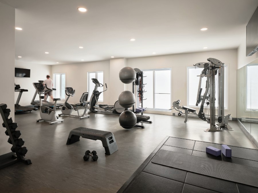 Une salle d'entraînement équipée pour permettre aux résidents de rester actifs sans quitter le confort de leur immeuble.